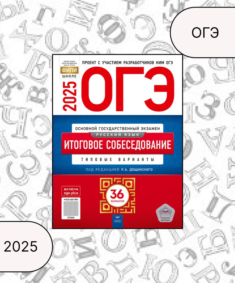 Серия подготовлена разработчиками контрольных измерительных материалов (КИМ) основного государственного экзамена. Итоговое собеседование по русскому языку для выпускников 9-х классов общеобразовательных организаций вводится как допуск к государственной итоговой аттестации по образовательным программам основного общего образования. В данном сборнике представлены: • 36 типовых вариантов, составленных в соответствии с проектом демоверсии итогового собеседования по русскому языку для выпускников основной школы; • инструкция по выполнению работы; • критерии оценивания выполнения заданий. Выполнение заданий типовых вариантов предоставляет обучающимся возможность совершенствовать навыки устной речи, подготовиться к итоговому собеседованию по русскому языку, а также объективно оценить уровень своей подготовки. Учителя могут использовать типовые варианты для организации контроля результатов освоения школьниками образовательных программ основного общего образования и интенсивной подготовки обучающихся к итоговому собеседованию по русскому языку.