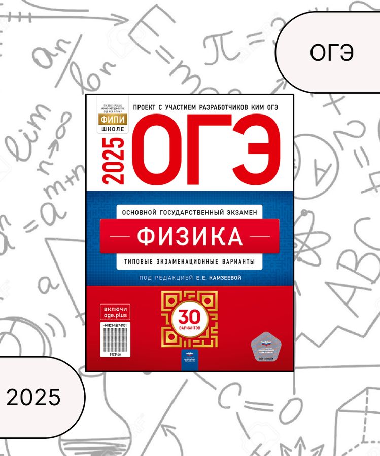 Серия подготовлена разработчиками контрольных измерительных материалов (КИМ) основного государственного экзамена. В сборнике представлены: • 30 типовых экзаменационных вариантов, составленных в соответствии с проектом демоверсии КИМ ОГЭ по физике 2025 года; • инструкция по выполнению экзаменационной работы; • ответы ко всем заданиям; • решения и критерии оценивания заданий. Выполнение заданий типовых экзаменационных вариантов предоставляет обучающимся возможность самостоятельно подготовиться к государственной итоговой аттестации в 9-м классе в форме ОГЭ, а также объективно оценить уровень своей подготовки к экзамену. Учителя могут использовать типовые экзаменационные варианты для организации контроля результатов освоения школьниками образовательных программ основного общего образования и интенсивной подготовки обучающихся к ОГЭ."