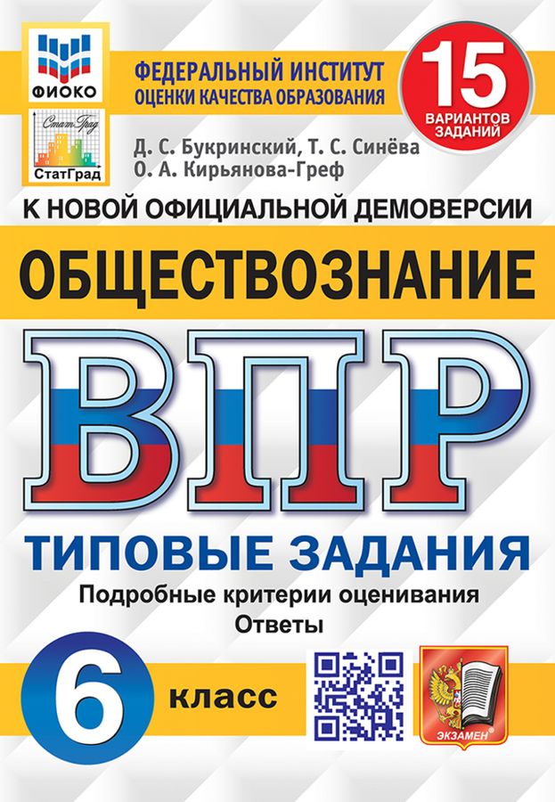 Данное пособие полностью соответствует федеральному государственному образовательному стандарту. В пособии представлены 15 вариантов типовых заданий Всероссийской проверочной работы (ВПР) по обществознанию для учащихся 6-х классов. Ко всем заданиям даны ответы и подробные критерии оценивания. Пособие необходимо учащимся 6-х классов, учителям и методистам, использующим типовые задания для подготовки к Всероссийской проверочной работе по обществознанию. Приказом №699 Министерства образования и науки Российской Федерации учебные пособия издательства "Экзамен" допущены к использованию в общеобразовательных организациях.