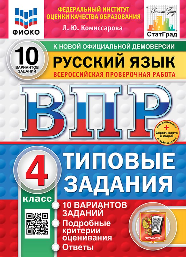 Данное пособие полностью соответствует федеральному государственному образовательному стандарту для начальной школы. Книга содержит 10 вариантов типовых заданий Всероссийской проверочной работы (ВПР) за курс начальной школы. Ответы к заданиям являются материалами для учителя, а потому даны в конце пособия и могут быть легко изъяты, что повышает объективность оценки знаний учащихся. Сборник предназначен учащимся 4-х классов начальной школы, учителям и методистам, использующим типовые задания для подготовки к Всероссийской проверочной работе за курс начальной школы. Приказом №699 Министерства образования и науки Российской Федерации учебные пособия издательства "Экзамен" допущены к использованию в общеобразовательных организациях.