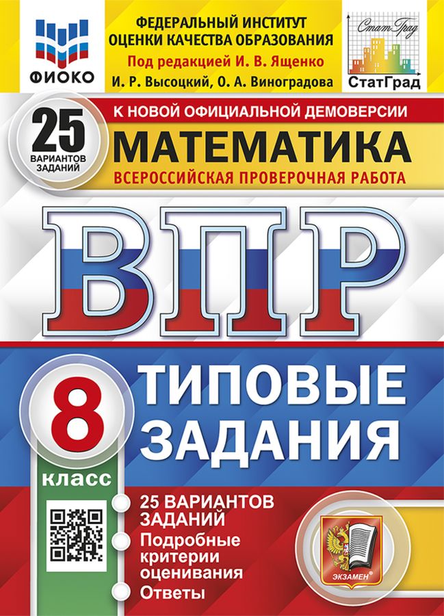 Данное пособие полностью соответствует федеральному государственному образовательному стандарту (второго поколения). Книга содержит 25 вариантов типовых заданий Всероссийской проверочной работы (ВПР) по математике для учащихся 8-х классов. Сборник предназначен учащимся 8-х классов, учителям и методистам, использующим типовые задания для подготовки к Всероссийской проверочной работе по математике. Приказом №699 Министерства образования и науки Российской Федерации учебные пособия издательства "Экзамен" допущены к использованию в общеобразовательных организациях.