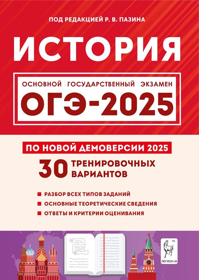 Пособие предназначено для подготовки к ОГЭ и содержит: 30 тренировочных вариантов, составленных по проектам демоверсии и спецификации, опубликованным на сайте ФИПИ www.fipi.ru 21.08.2024 г.; ответы ко всем вариантам; приложения, включающие список правителей и хронологическую таблицу. Работа с пособием поможет девятиклассникам научиться выполнять все задания в формате ОГЭ. Выпускники смогут повторить пройденный материал и выявить возможные пробелы в своих знаниях. Учитель может использовать пособие на различных этапах урока в 8–9-х классах, при подготовке обучающихся к ОГЭ, для проведения мониторинга учебной деятельности.