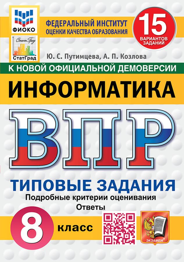 Данное пособие полностью соответствует федеральному государственному образовательному стандарту. Книга содержит 15 вариантов типовых заданий Всероссийской проверочной работы (ВПР) по информатике для учащихся 8-х классов. Сборник предназначен учащимся 8-х классов, учителям и методистам, использующим типовые задания для подготовки к Всероссийской проверочной работе по информатике.