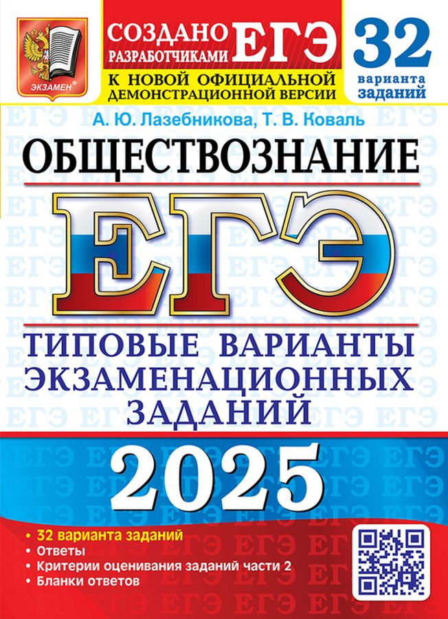 Авторы заданий - ведущие специалисты, принимающие непосредственное участие в разработке контрольных измерительных материалов ЕГЭ. Пособие содержит 32 типовых варианта экзаменационных заданий по обществознанию, составленных с учетом всех особенностей и требований Единого государственного экзамена в 2025 г. Назначение пособия - предоставить читателям информацию о структуре и содержании контрольных измерительных материалов по обществознанию, степени трудности заданий. В сборнике даны ответы на все варианты заданий, подробные критерии оценивания заданий части 2 и приведены образцы бланков, используемых на ЕГЭ для записи ответов и решений. Пособие предназначено учителям для подготовки учащихся к сдаче Единого государственного экзамена по обществознанию, а также учащимся-старшеклассникам для самоподготовки и самоконтроля.