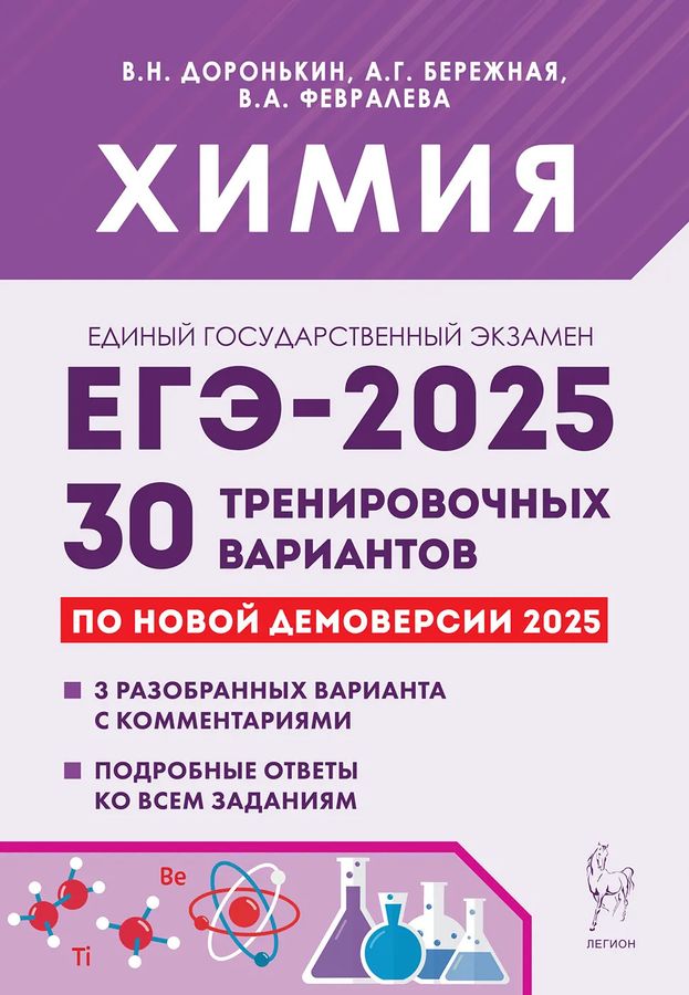 Пособие предназначено для подготовки к ЕГЭ по химии. Книга содержит: 30 новых тренировочных вариантов, составленных по официальным проектам демоверсии и спецификации 2025 года, опубликованным 23.08.2024 г. на сайте ФИПИ www.fipi.ru; 3 разобранных варианта экзаменационной работы с образцами выполнения всех заданий и комментариями; ответы ко всем вариантам. Работая по этой книге в классе и дома, выпускники систематизируют изученный ранее материал, приобретут устойчивые навыки выполнения всех заданий в формате ЕГЭ, научатся распределять время в процессе выполнения тренировочных вариантов и, как следствие, смогут успешно сдать экзамен. Книга адресована также учителям для использования в образовательном процессе — на уроках, дополнительных и индивидуальных занятиях.