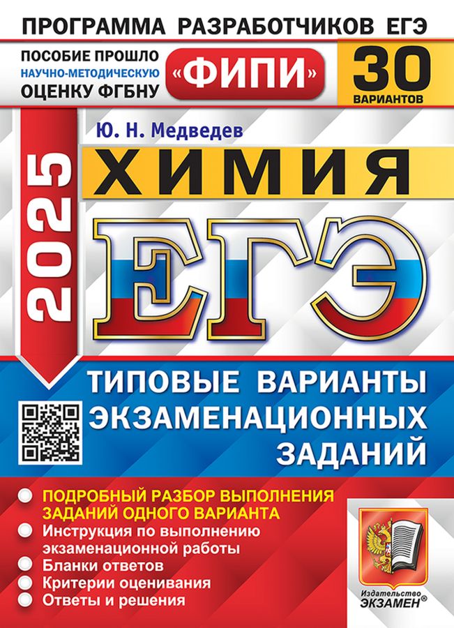 Пособие прошло научно-методическую оценку ФГБНУ "ФИПИ". Пособие содержит 30 типовых вариантов экзаменационных заданий Единого государственного экзамена по химии. Назначение пособий - предоставить возможность обучающимся отработать навыки выполнения заданий, аналогичных заданий, представленных в демонстрационной версии ЕГЭ по химии. Пособие адресовано учителям для подготовки учащихся к Единому государственному экзамену, а обучающимся-старшеклассникам - для самоподготовки и самоконтроля. Приказом №699 Министерства образования и науки Российской Федерации учебные пособия издательства "Экзамен" допущены к использованию в общеобразовательных организациях.