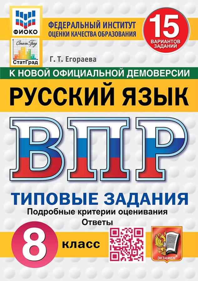 Данное пособие полностью соответствует федеральному государственному образовательному стандарту. Книга содержит 15 вариантов типовых заданий Всероссийской проверочной работы (ВПР) по русскому языку для учащихся 8-х классов. Сборник предназначен учащимся 8-х классов, учителям и методистам, использующим типовые задания для подготовки к Всероссийской проверочной работе по русскому языку. Приказом №699 Министерства образования и науки Российской Федерации учебные пособия издательства "Экзамен" допущены к использованию в общеобразовательных организациях.