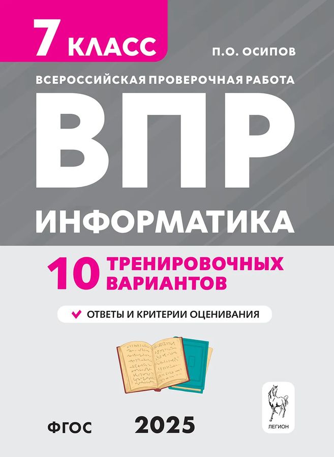 Пособие содержит 10 тренировочных вариантов по информатике для 7-го класса в формате ВПР, составленных автором в полном соответствии с описанием и образцом всероссийской проверочной работы, опубликованными на сайте ФИОКО (www.fioko.ru). Книга включает в себя: 10 тренировочных вариантов в формате ВПР; инструкцию для школьников; ответы по всем заданиям и критерии их оценивания. Пособие предназначено учителям, учащимся 7-х классов и их родителям. В 8-х классах материалы книги можно использовать в начале учебного года в качестве диагностической стартовой работы. Пособие полностью соответствует ФГОС основного общего образования.