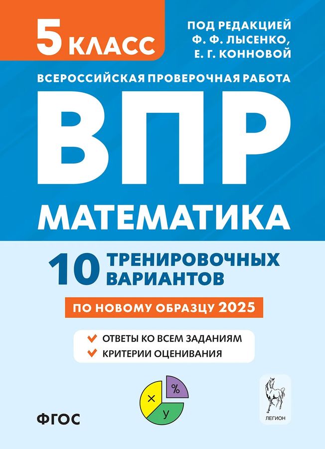 Пособие предназначено для подготовки к всероссийской проверочной работе по математике в 5-м классе. Книга содержит: 10 тренировочных вариантов в формате ВПР; инструкцию для школьников; ответы ко всем заданиям и критерии их оценивания. Задания соответствуют образцу и описанию проверочной работы, размещённым на сайте Федерального института оценки качества образования (www.fioco.ru). Пособие адресовано учителям, учащимся 5-х классов и их родителям.