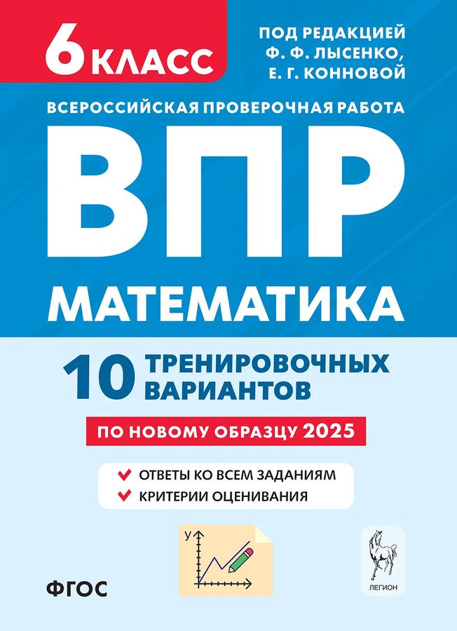 Пособие предназначено для подготовки к всероссийской проверочной работе по математике в 6-м классе. Книга содержит: 10 тренировочных вариантов в формате ВПР; инструкцию для школьников; ответы ко всем заданиям и критерии их оценивания. Варианты соответствуют образцу и описанию проверочной работы, размещённым на сайте Федерального института оценки качества образования (www.fioco.ru). Пособие адресовано учителям, учащимся 6-х классов и их родителям.