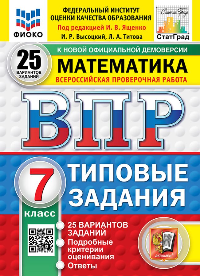 Данное пособие полностью соответствует федеральному государственному образовательному стандарту. Книга содержит 25 вариантов типовых заданий Всероссийской проверочной работы (ВПР) по математике для учащихся 7-х классов. Сборник предназначен учащимся 7-х классов, учителям и методистам, использующим типовые задания для подготовки к Всероссийской проверочной работе по математике. Приказом №699 Министерства образования и науки РФ учебные пособия издательства "Экзамен" допущены к использованию в общеобразовательных организациях.