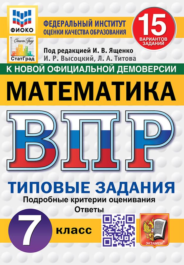 Данное пособие полностью соответствует федеральному государственному образовательному стандарту. Книга содержит 15 вариантов типовых заданий Всероссийской проверочной работы (ВПР) по математике для учащихся 7-х классов. Сборник предназначен учащимся 7-х классов, учителям и методистам, использующим типовые задания для подготовки к Всероссийской проверочной работе по математике. Приказом №699 Министерства образования и науки РФ учебные пособия издательства "Экзамен" допущены к использованию в общеобразовательных организациях.