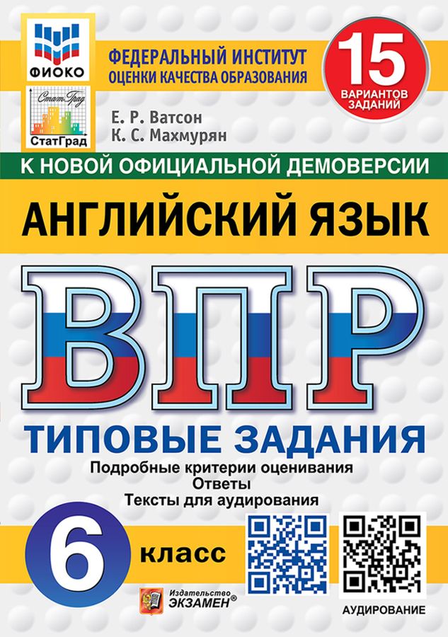 Данное пособие полностью соответствует федеральному государственному образовательному стандарту. Книга содержит 15 вариантов типовых заданий Всероссийской проверочной работы (ВПР) по английскому языку для учащихся 6-х классов. Сборник предназначен учащимся 6-х классов, учителям и методистам, использующим типовые задания для подготовки к Всероссийской проверочной работе по английскому языку. Приказом №699 Министерства образования и науки РФ учебные пособия издательства "Экзамен" допущены к использованию в общеобразовательных организациях.
