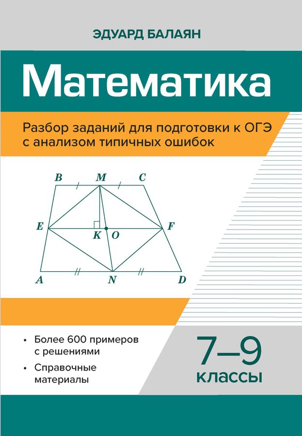 В предлагаемом пособии приводятся решения всех заданий ОГЭ по математике. На многочисленных примерах с подробными решениями и обоснованиями показаны различные способы решения задач, что имеет большее значение для математического развития учащихся, чем решение многих задач, но одним и тем же способом. В пособии классифицированы типичные ошибки, допускаемые школьниками, указаны причины таких ошибок и приведены правильные решения. Рассмотрены ошибки (в том числе вычислительные) в тождественных преобразованиях, при решении различных типов уравнений, неравенств, при исследовании функций, их свойств и построении графиков. Упражнения для самостоятельного решения отмечены темными кружочками перед каждым номером, что позволяет закрепить усвоенный материал и ликвидировать пробелы в знаниях. Для удобства пользования пособием приводятся краткие справочные материалы по курсу математики 7-9 классов. Пособие адресовано учащимся 7-9 классов для подготовки к ОГЭ, учителям математики и репетиторам.
