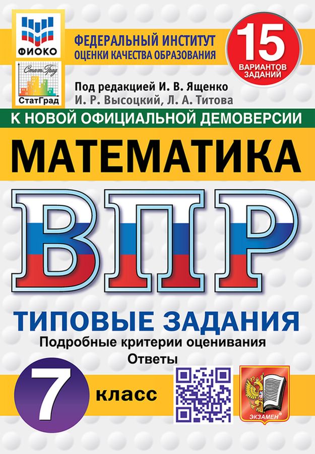 Данное пособие полностью соответствует федеральному государственному образовательному стандарту. Книга содержит 15 вариантов типовых заданий Всероссийской проверочной работы (ВПР) по математике для учащихся 7-х классов. Сборник предназначен учащимся 7-х классов, учителям и методистам, использующим типовые задания для подготовки к Всероссийской проверочной работе по математике.
