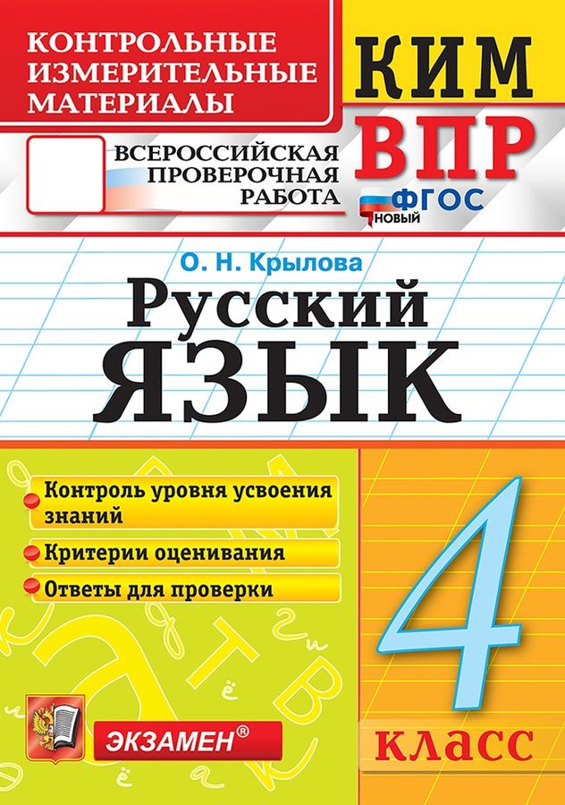 Данное пособие полностью соответствует федеральному государственному образовательному стандарту для начальной школы. Книга содержит контрольные измерительные материалы по предмету "Русский язык". Назначение пособия - отработка практических навыков учащихся при подготовке к Всероссийской проверочной работе. В сборнике даны ответы на все варианты заданий. Приведены критерии оценивания.