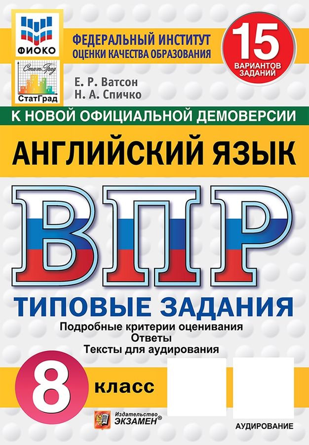 Данное пособие полностью соответствует федеральному государственному образовательному стандарту. Книга содержит 15 вариантов типовых заданий Всероссийской проверочной работы (ВПР) по английскому языку для учащихся 8-х классов. Сборник предназначен учащимся 8-х классов, учителям и методистам, использующим типовые задания для подготовки к Всероссийской проверочной работе по английскому языку.