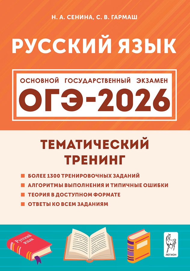 Пособие предназначено для начального этапа подготовки к основному государственному экзамену по русскому языку. Оно содержит комплекты тренировочных заданий, сгруппированных по темам, которые соответствуют кодификатору ОГЭ и ежегодно входят в экзаменационную модель. Периодически обновляемые ФИПИ спецификация и демоверсия могут содержать новые формулировки и иной формат самого задания, но эти изменения не затрагивают стабильного перечня тем, выносимых на экзамен. Тематический тренинг позволяет отработать каждую тему в отдельности и осуществить базовую подготовку к экзамену. В книгу вошёл весь материал, необходимый для фундаментальной подготовки к ОГЭ: свыше тысячи трёхсот заданий; теоретические сведения, алгоритмы выполнения каждого задания, типичные ошибки; ответы ко всем заданиям. Пособие удобно и просто структурировано, что позволит выпускникам готовиться к экзамену самостоятельно. После публикации на сайте ФИПИ проектов нормативных документов, регламентирующих ОГЭ на следующий учебный год, издательство «Легион» выпускает учебно-методическое пособие «Русский язык. Подготовка к ОГЭ-2026. 30 тренировочных вариантов по демоверсии 2026 года», все варианты и задания которого строго соответствуют новым спецификации и демоверсии, а на обложке книги содержится надпись «По новой демоверсии 2026».