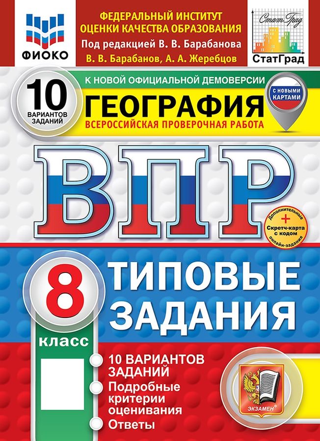 Данное пособие полностью соответствует федеральному государственному образовательному стандарту. Книга содержит 10 вариантов типовых заданий Всероссийской проверочной работы (ВПР) по географии для учащихся 8-х классов. Сборник предназначен учащимся 8-х классов, учителям и методистам, использующим типовые задания для подготовки к Всероссийской проверочной работе по географии.