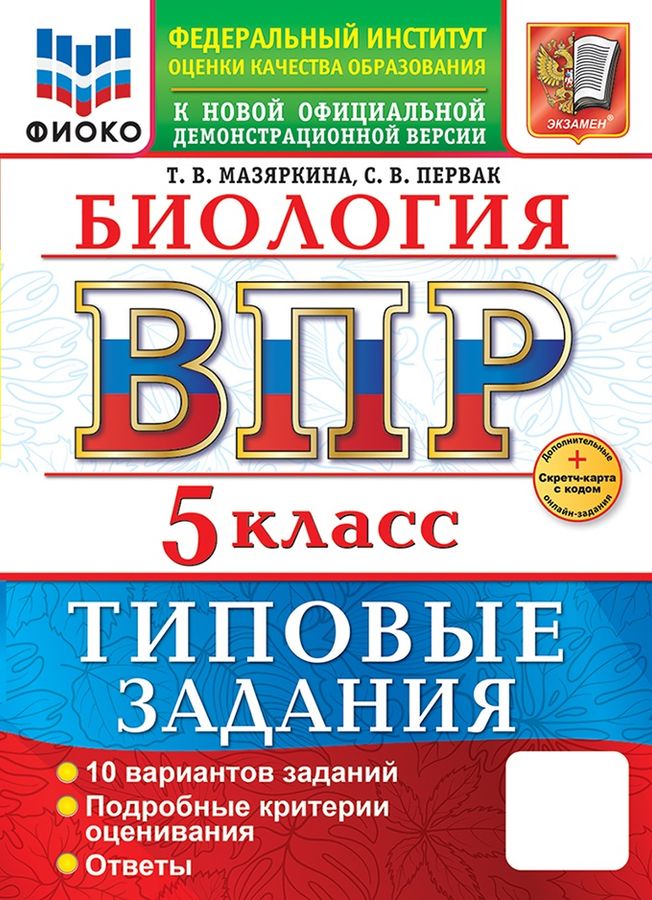 Данное пособие полностью соответствует федеральному государственному образовательному стандарту. Книга содержит 10 вариантов типовых заданий Всероссийской проверочной работы (ВПР) по биологии для учащихся 5-х классов. Сборник предназначен учащимся 5-х классов, учителям и методистам, использующим типовые задания для подготовки к Всероссийской проверочной работе по биологии.
