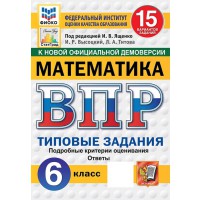 Данное пособие полностью соответствует федеральному государственному образовательному стандарту. Книга содержит 15 вариантов типовых заданий Всероссийской проверочной работы (ВПР) по математике для учащихся 6-х классов. Сборник предназначен учащимся 6-х классов, учителям и методистам, использующим типовые задания для подготовки к Всероссийской проверочной работе по математике.