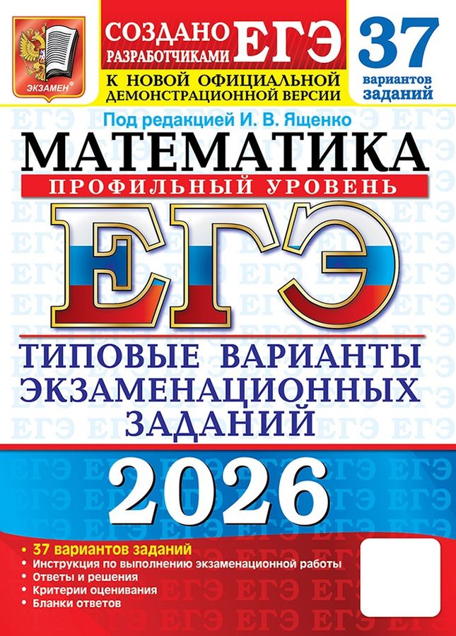 Авторы пособия - ведущие специалисты, принимающие непосредственное участие в разработке методических материалов для подготовки к выполнению контрольных измерительных материалов ЕГЭ. Пособие содержит 37 типовых вариантов экзаменационных заданий по математике. Все задания составлены с учётом особенностей и требований Единого государственного экзамена, полностью соответствуют демоверсии, спецификации и кодификатору ЕГЭ 2026 года по математике профильного уровня, опубликованным на сайте ФИПИ. Назначение пособия - предоставить читателям информацию о структуре и содержании контрольных измерительных материалов по математике профильного уровня, степени трудности заданий. В сборнике даны ответы на все варианты тестов, приводятся решения всех заданий части 2 двух вариантов. Кроме того, приведены образцы бланков, используемых на ЕГЭ для записи ответов и решений. Пособие может быть использовано учителями для подготовки учащихся к экзамену по математике в форме ЕГЭ, а также старшеклассниками - для самоподготовки и самоконтроля.
