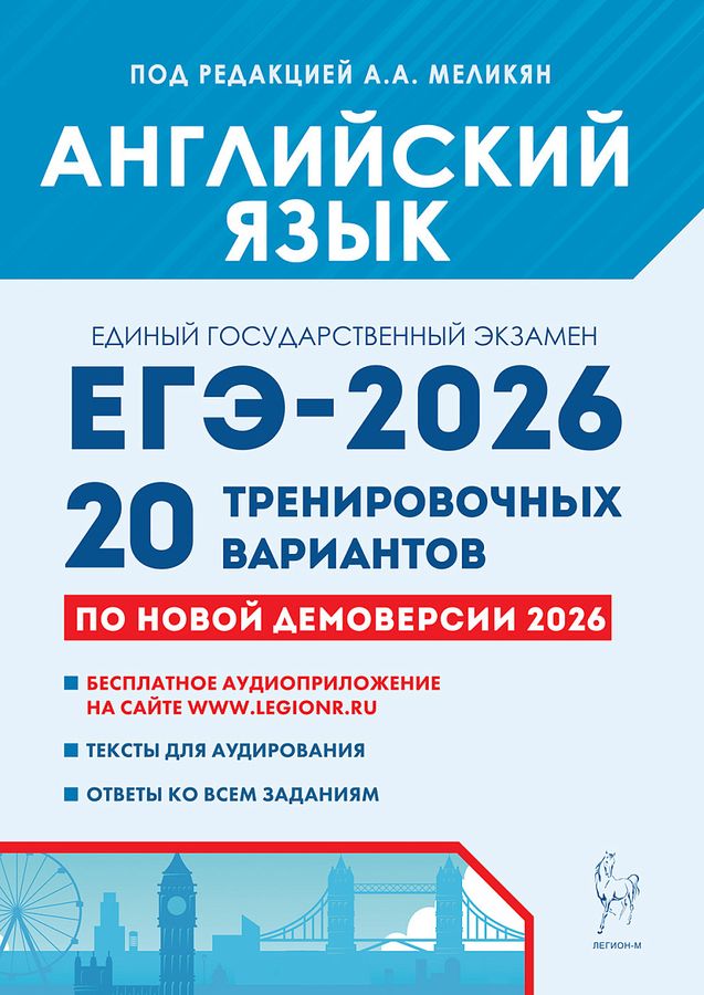 Пособие предназначено для подготовки к единому государственному экзамену по английскому языку. Книга содержит весь необходимый для этого материал: 20 новых тренировочных вариантов, составленных по проектам демоверсии и спецификации ЕГЭ 2026 года, опубликованным на сайте ФИПИ 22.08.2025; ответы ко всем вариантам; тексты для аудирования. Аудиоприложение можно бесплатно скачать на сайте издательства в разделе «Электронные приложения». Пособие адресовано выпускникам общеобразовательных учреждений и учителям.