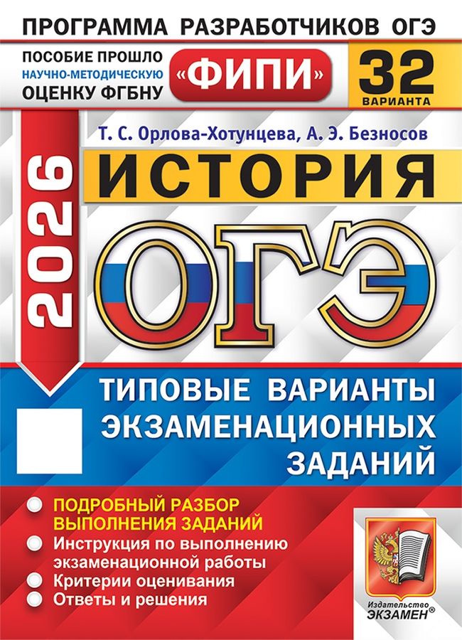 Пособие прошло научно-методическую оценку ФГБНУ "ФИПИ". Пособие содержит 32 типовых варианта экзаменационных заданий Основного государственного экзамена по истории. Назначение пособия - предоставить возможность обучающимся отработать навыки выполнения заданий, аналогичных заданиям, представленным в демонстрационной версии ОГЭ по истории. Пособие адресовано учителям для подготовки учащихся к Основному государственному экзамену, а учащимся-девятиклассникам - для самоподготовки и самоконтроля. Приказом № 699 Министерства образования и науки Российской Федерации учебные пособия издательства "Экзамен" допущены к использованию в общеобразовательных организациях.