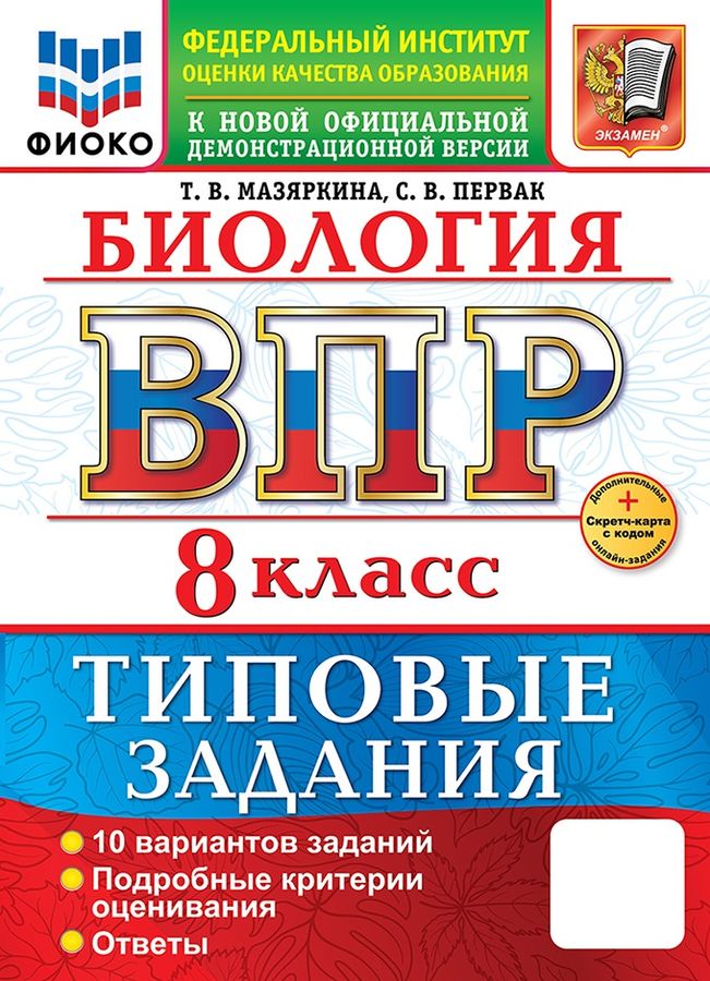 Данное пособие полностью соответствует федеральному государственному образовательному стандарту. Книга содержит 10 вариантов типовых заданий Всероссийской проверочной работы (ВПР) по биологии для учащихся 8-х классов. Сборник предназначен учащимся 8-х классов, учителям и методистам, использующим типовые задания для подготовки к Всероссийской проверочной работе по биологии.