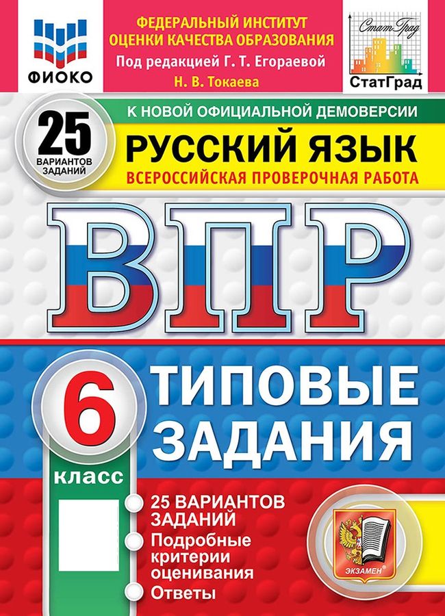 ВПР. Русский язык. 6 класс. Типовые задания. 25 вариантов 2026 | Токаева Н.В.