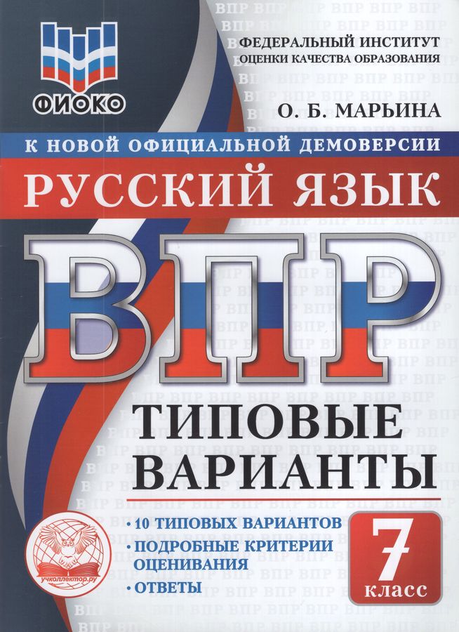 Данное пособие полностью соответствует федеральному государственному образовательному стандарту. Книга содержит 10 типовых вариантов Всероссийской проверочной работы (ВПР) по русскому языку для учащихся 7-х классов. Сборник предназначен учащимся 7-х классов, учителям и методистам, использующим типовые варианты для подготовки к Всероссийской проверочной работе по русскому языку.