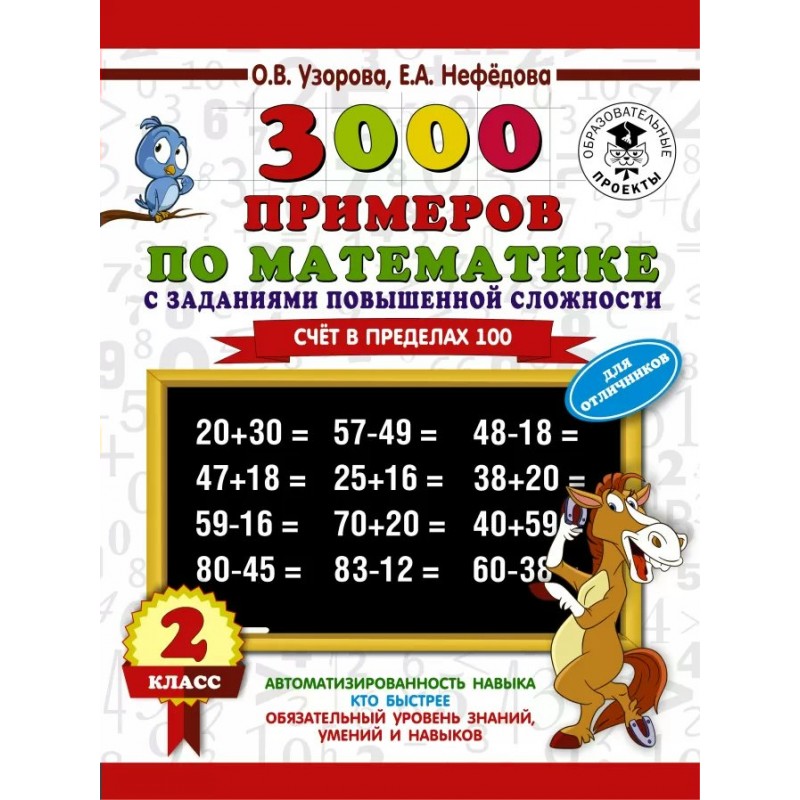 Пособие содержит 3000 математических примеров по теме "Счёт в пределах 100". Оригинальное построение материала позволяет обеспечить более глубокое его усвоение. Как показывает практика, ученик полностью освоил программу, если решает и записывает ответ по истечении 4-7 секунд. В этом случае можно говорить, что навык счёта доведен до автоматизма. На каждой странице приведены 7 столбиков, в среднем по 40 примеров. В конце столбика записывается время. В нижнем левом углу обозначены контрольные цифры: идеальное время решения одного столбика, удовлетворительное и результат, который должен заставить ученика задуматься. Чтобы достичь отличных результатов, каждый день следует решать по одной странице. Для учеников, быстрее других выполнивших задание, а также для максимально эффективного усвоения темы в конце каждой страницы даны усложненные задания-"бонусы". Пособие может быть использовано на уроках математики, а также для работы дома.