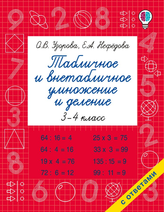 Занятия по книжке известного педагога-практика О. В. Узоровой "Табличное и внетабличное умножение и деление" позволят эффективно организовать процесс запоминания таблицы умножения и помогут ребёнку научиться находить произведение и частное методами внетабличного вычисления. Для учащихся начальной школы.
