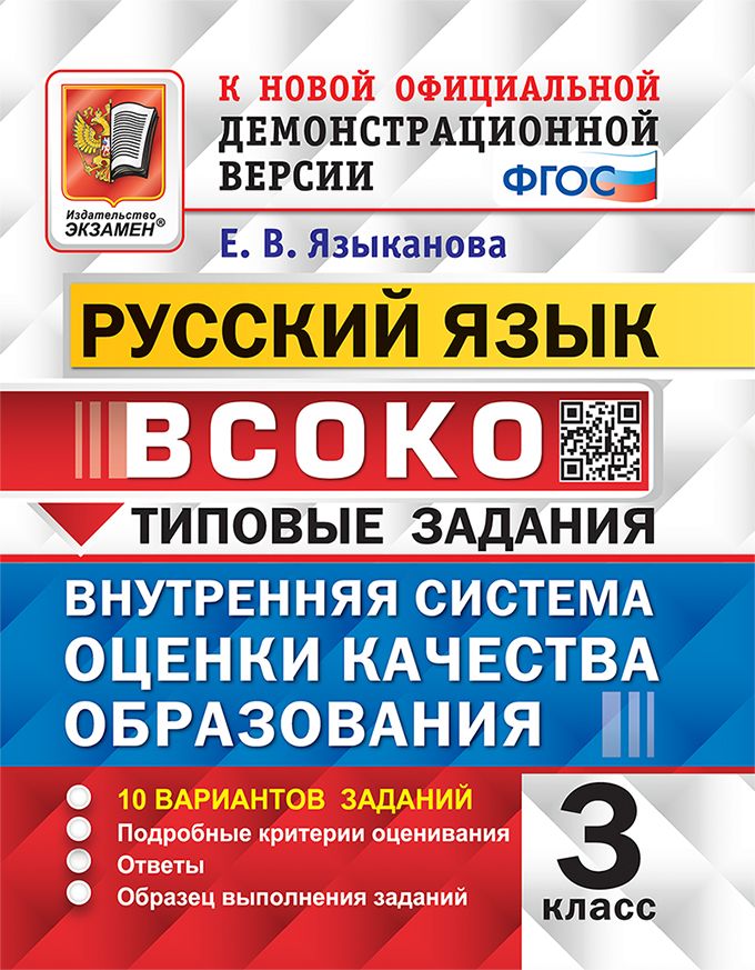 Данное пособие полностью соответствует федеральному государственному образовательному стандарту (второго поколения) для начальной школы. Книга содержит 10 вариантов типовых заданий ВСОКО (внутренняя система оценки качества образования) за курс 3-го класса. Назначение пособия - отработка практических навыков учащихся по русскому языку при подготовке к внутренней системе оценки качества образования. Ответы к заданиям всех вариантов являются материалами для учителя, а потому даны в середине пособия и могут быть легко изъяты, что повышает объективность оценки знаний учащихся. Сборник предназначен учащимся 3-х классов начальной школы, учителям и методистам, использующим типовые задания для подготовки к внутренней системе оценки качества образования.