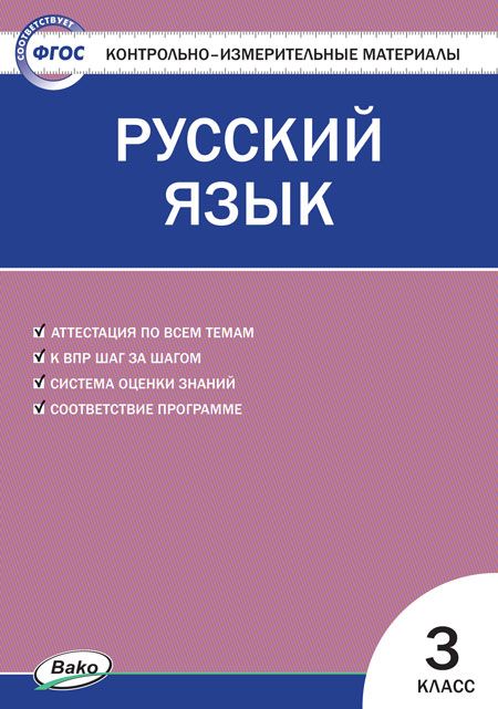 В пособии представлены контрольно-измерительные материалы по русскому языку для 3 класса. Материал расположен в соответствии с порядком изложения тем в учебнике В.П. Канакиной, В.Г. Горецкого УМК «Школа России», входящем в федеральный перечень учебников на 2020/2021 учебный год. Задания соответствуют программе общеобразовательных организаций и требованиям ФГОС для начальной школы. В конце пособия ко всем заданиям приведены ответы. Издание адресовано учителям начальных классов, а также школьникам и их родителям.