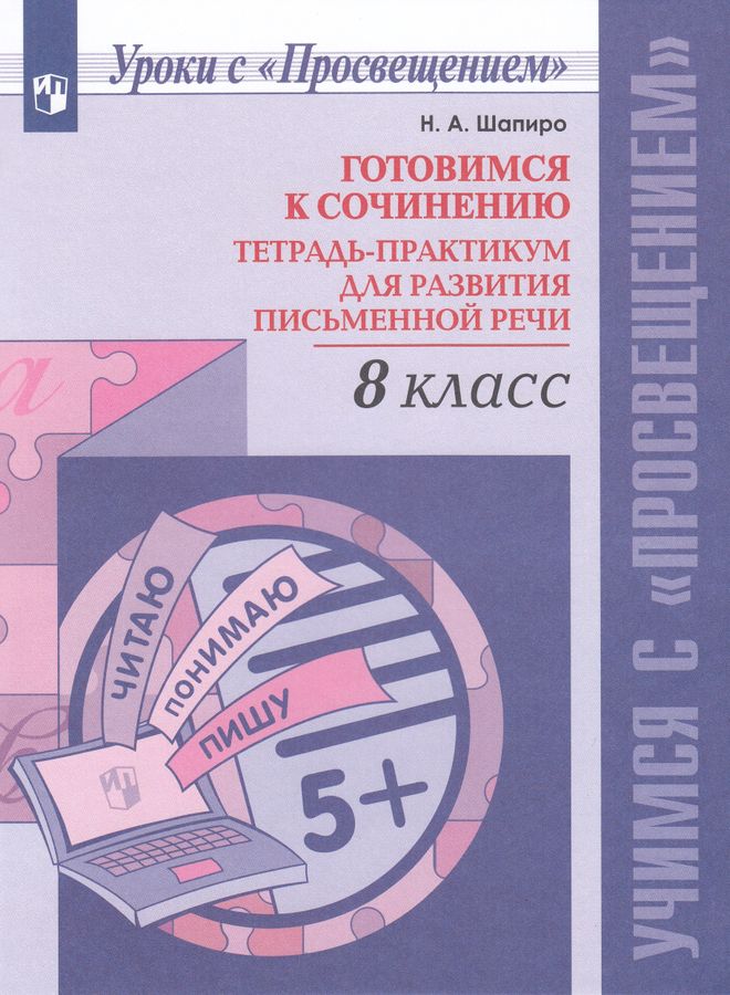 Данная тетрадь относится к серии тетрадей-практикумов для развития письменной речи учащихся 5−9 классов. В серию также входят методические рекомендации, размещённые на сайте издательства. Автор серии — учитель русского языка и литературы, методический редактор журнала «Русский язык» ИД «Первое сентября» Н. А. Шапиро. В тетради-практикуме представлен комплекс упражнений, который поможет научиться писать не только сочинения, но и самостоятельные тексты по разным предметам — истории, обществознанию, географии, биологии и др. Пособие адресовано восьмиклассникам.