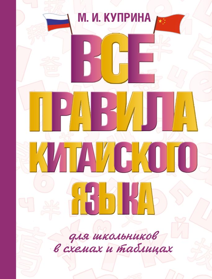 Марина Куприна – дипломированный переводчик, преподаватель с многолетним стажем, автор словарей и учебных пособий для детей и взрослых. Данное пособие содержит большой лексический объем и необходимые грамматические конструкции китайского языка для 5–9 классов. Наглядные таблицы и простые схемы помогают легко освоить или повторить любую грамматическую тему. Все темы дополнены примерами с переводом на русский язык для лучшего понимания. В книге присутствуют иллюстрации, способствующие быстрому закреплению тем и слов. Справочник адресован школьникам и всем, кто уже учит или начинает учить китайский язык.