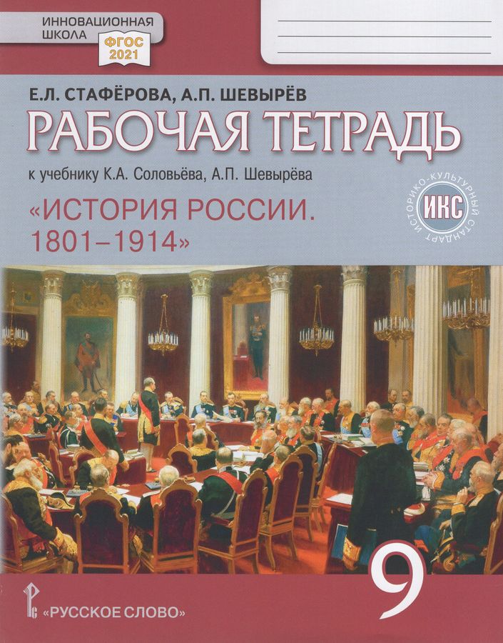 Рабочая тетрадь к учебнику К.А. Соловьёва, А.П. Шевырёва «История России. 1801–1914» для 9 класса содержит задания различных типов и уровней сложности. Выполнение заданий рабочей тетради позволит лучше организовать самостоятельную работу учащихся на уроке и дома, будет способствовать совершенствованию навыков работы с материалом учебника и историческими документами, поможет осуществить контроль усвоения знаний на всех этапах учебного процесса.