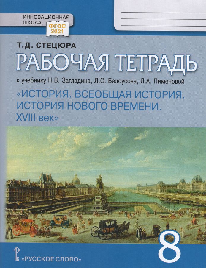 Рабочая тетрадь к учебнику Н.В. Загладина, Л.С. Белоусова, Л.А. Пименовой «История. Всеобщая история. История Нового времени. XVIII век» для 8 класса общеобразовательных организаций содержит задания различных уровней сложности. Выполнение заданий рабочей тетради позволит лучше организовать самостоятельную работу учащихся на уроке и дома, будет способствовать совершенствованию навыков работы с материалом учебника и историческими документами, поможет осуществить контроль усвоения знаний на всех этапах учебного процесса. Соответствует Федеральному государственному образовательному стандарту 2021 года, Федеральной образовательной программе основного общего образования.
