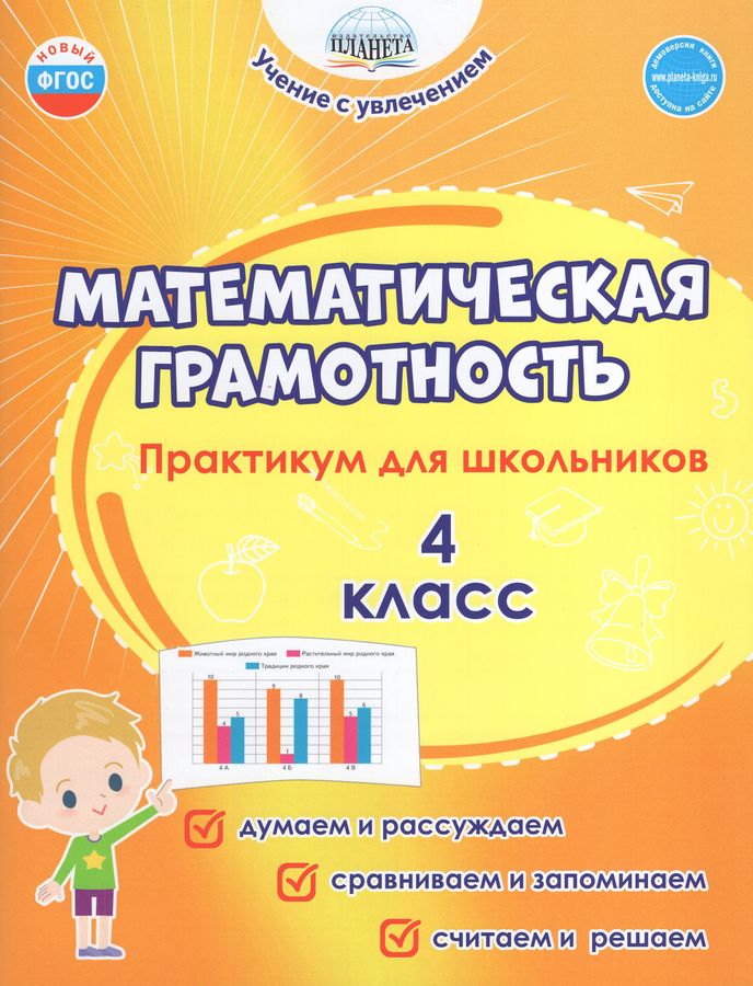Математическая грамотность – способность человека применять и интерпретировать математику в разнообразных контекстах, использовать математические понятия и факты для описания, объяснения и предсказания явлений. Математическая грамотность также включает в себя способность выделить в различных ситуациях математическую проблему и решить её. В данной книге представлены 32 практические работы для учеников 4 класса. Основная цель практикума – формирование у четвероклассников элементов математической грамотности. Задания практических работ помогут школьникам научиться понимать и решать практические (житейские) задачи с математической составляющей. Работа с книгой будет способствовать развитию у детей произвольного внимания, познавательных интересов и потребностей, сообразительности, вдумчивости, усидчивости, понимания принципа действия математических законов. Практикум полностью соответствует обновлённому ФГОС НОО и предназначен учащимся четвертого класса и их родителям, учителям начальной школы, педагогам дополнительного образования.