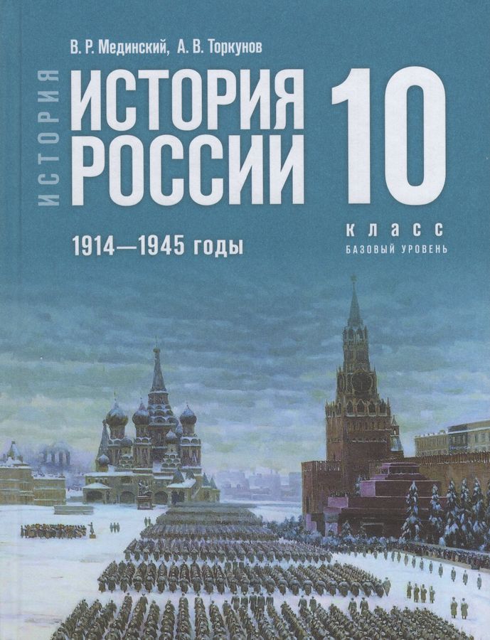 Учебник История России 1914-1945 гг 10 класс Просвещение 2024 год Авторы Мединский В.Р., Торкунов А.В. Учебник разработан в соответствии с актуальными требованиями Федерального государственного образовательного стандарта среднего общего образования, Федеральной образовательной программы среднего общего образования, а также Концепции преподавания учебного курса «История России» в образовательных организациях Российской Федерации. В учебнике освещены основные события истории России 1914—1945 гг., большое значение уделено вопросам интеграции событий отечественной и зарубежной истории. Представленные в учебнике вопросы и задания нацелены на изучение региональной истории, подготовку к промежуточной и итоговой аттестации. Значительное место в учебнике занимают материалы по истории духовной жизни общества, культуры и повседневности. Главным результатом изучения курса должно стать формирование у учащихся патриотизма и российской гражданской идентичности.