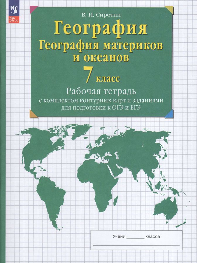 Рабочая тетрадь География ОГЭ ЕГЭ 7 класс Просвещение 2024 год Автор Сиротин В. И. Данное учебное пособие адресовано учащимся 7 классов. Выполнение разнообразных, методически подобранных заданий позволит учащемуся закрепить полученные знания по географии, развить предметные и метапредметные навыки и умения; научиться работать с массивами данных, анализировать их и оформлять свои результаты в виде таблиц, диаграмм и специальных карт. Задания тетради могут быть использованы на уроках, при проведении учебных экскурсий и дома для самостоятельной работы. Границы государств на картах даны на октябрь 2022 г.