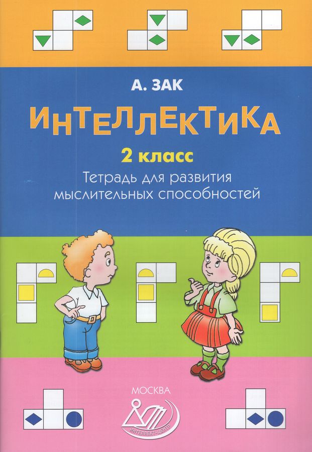Предлагаемая Вашему вниманию тетрадь с игровыми заданиями – вторая часть четырехлетнего курса «Интеллектика», разработанного специалистом по развитию мышления, доктором психологических наук А.З. Заком. Курс предназначен для систематического развития основных мыслительных способностей у детей 6 – 10 лет с целью повышения их интеллектуальной готовности к средним классам школы. Развивающие занятия разработаны для групповой работы в школе: одно занятие в неделю в урочное или во внеурочное время. Занятия с тетрадью можно проводить с ребенком и дома. Представленный материал включает в себя поисково-творческие занимательные задания разнообразных интеллектуальных игр, построенных на не учебном материале. Одни игры предназначены для развития способности анализировать и совершенствовать зрительное восприятие и произвольное внимание, поскольку в этих играх требуется выделять и сравнивать элементы предметных и абстрактных изображений (см. занятия 2, 6, 10, 18, 22, 26). Другие игры нацелены на развитие способности планировать и совершенствовать действия в мысленном плане, в представлении, поскольку в этих играх требуется определять особенности воображаемых перемещений по условным правилам таких выдуманных персонажей, как «Утка», «Заяц», «Кошка» (см. занятия 4, 8, 12, 14, 16, 20, 24, 28, 30). Игры третьего рода связаны с развитием способности комбинировать и совершенствовать наглядно-образное мышление, поскольку в этих играх требуется по-разному изменять расположения предложенных геометрических фигурок (см. занятия 1, 5, 9, 13, 17, 21, 25, 29, 32). В играх четвертого рода развивается способность рассуждать и умозаключать, совершенствуется логическое мышление, поскольку в этих играх требуется делать вывод из предложенных суждений (см. занятия 3, 7, 11, 15, 19, 23, 27, 31).