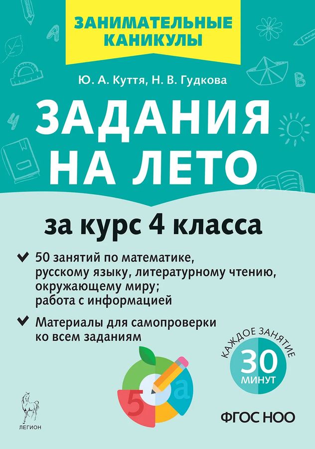 Задания на лето за курс 4 класса предназначено родителям, учителям начальной школы и классным руководителям для работы с учащимися, закончившими четвёртый класс. Книга содержит 50 занятий с заданиями по русскому языку, математике, литературному чтению, окружающему миру, а также задания по работе с информацией. Задания составлены в соответствии с требованиями обновлённого ФГОС начального общего образования. Материалы для самопроверки даны в середине пособия. Выполняя задания нашего пособия, составленные в занимательной форме, будущий пятиклассник получит возможность в течение летних каникул повторить основной материал, изученный в начальной школе, по русскому языку, литературному чтению, математике и окружающему миру, чтобы успешно начать обучение в основной школе.