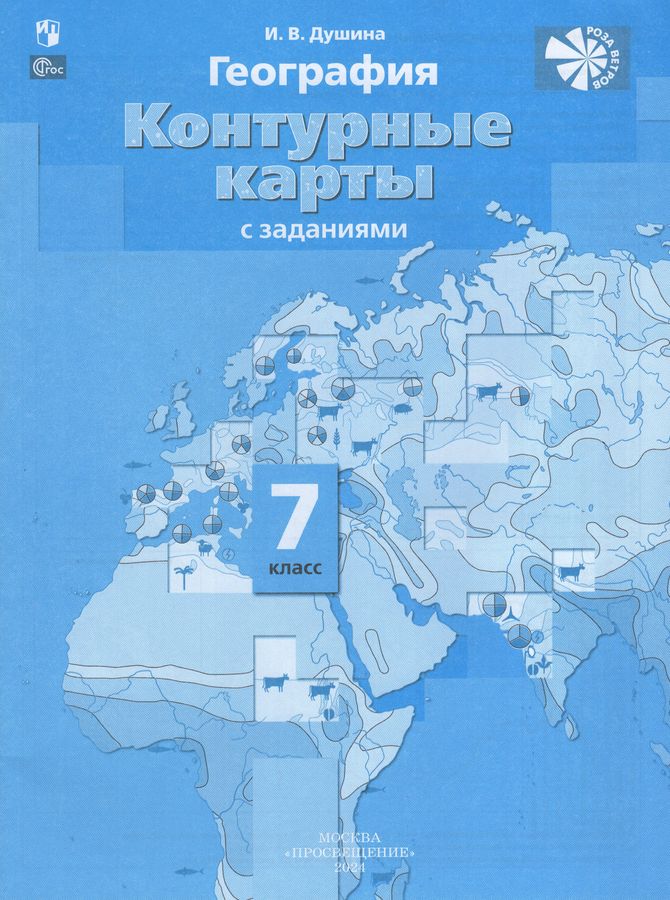 География. 7 класс. Контурные карты с заданиями 2024 | Душина И.В.