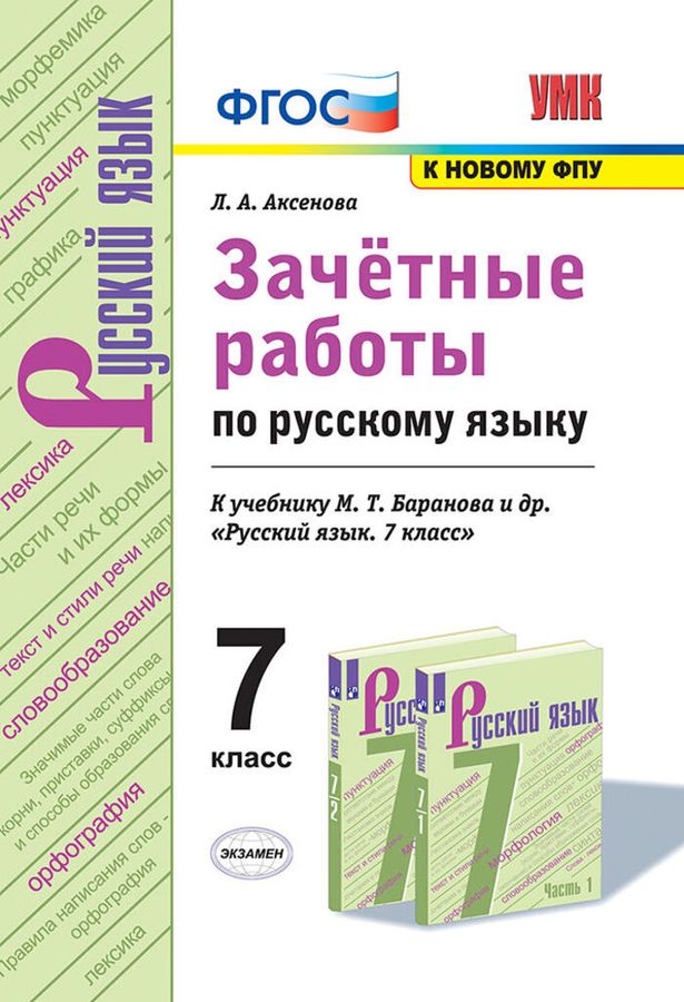 Данное пособие полностью соответствует федеральному государственному образовательному стандарту (второго поколения). Пособие содержит по два варианта зачётных работ по всем темам курса русского языка для проверки знаний учащихся 7 класса. Для каждой темы предложены разнообразные виды работ. Издание предназначено как учителям для проведения зачётных работ, так и учащимся для самоподготовки. Приказом №699 Министерства образования и науки РФ учебные пособия издательства "Экзамен" допущены к использованию в общеобразовательных организациях.