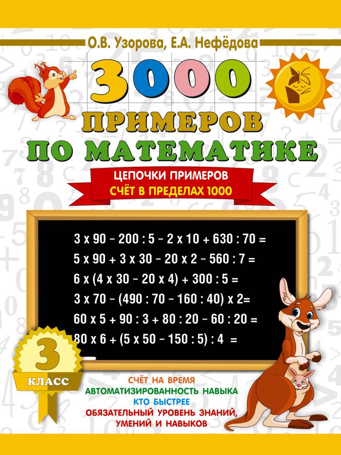 В пособии представлен материал, который поможет сформировать навыки устного счета по базовым темам 3 класса. Отвечая на вопросы учителя к каждому из приведенных примеров, учащиеся выполняют несколько математических заданий - всего более 3000 примеров. Последовательное выполнение заданий пособия поможет ученикам овладеть навыками устного счёта всех форм: беглым слуховым счётом (учитель вслух читает цепочку примеров, делая небольшие остановки для подсчёта, и ученик через несколько секунд отвечает), зрительным счётом (цепочки примеров записаны, а ответы ученик либо сообщает устно, либо записывает), комбинированным счетом (учитель диктует цепочки примеров, а ученик записывает ответы). Систематическое выполнение этих заданий развивает логическое и математическое мышление, сообразительность, укрепляет память и внимание. По усмотрению учителя цепочки примеров можно использовать как для олимпиадных работ и заданий повышенной сложности, так и для повторения и закрепления изученной темы. Для лучшего усвоения материала рекомендуется решать по десять примеров в день. Пособие можно использовать на уроках математики и для самостоятельной работы дома.