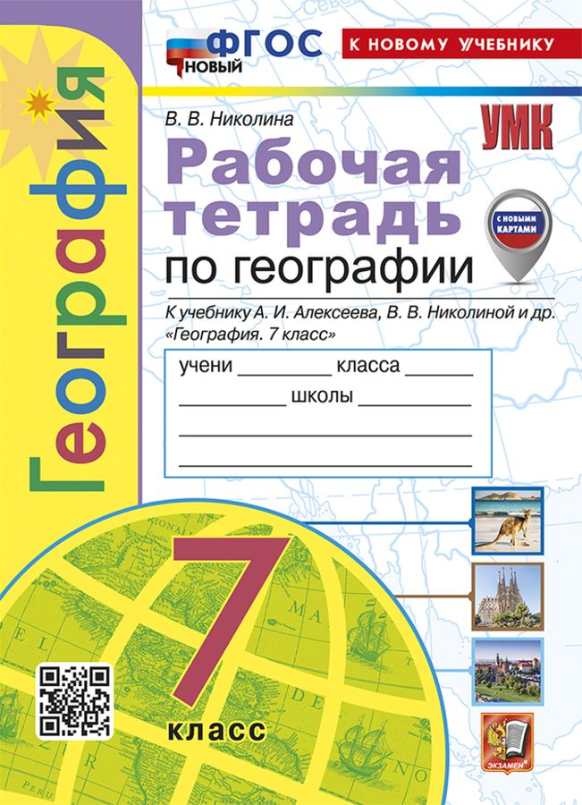 География. 7 класс. Рабочая тетрадь с комплектом контурных карт. К учебнику А.И. Алексеева, В.В. Николиной и др. 2025 | Николина В.В.