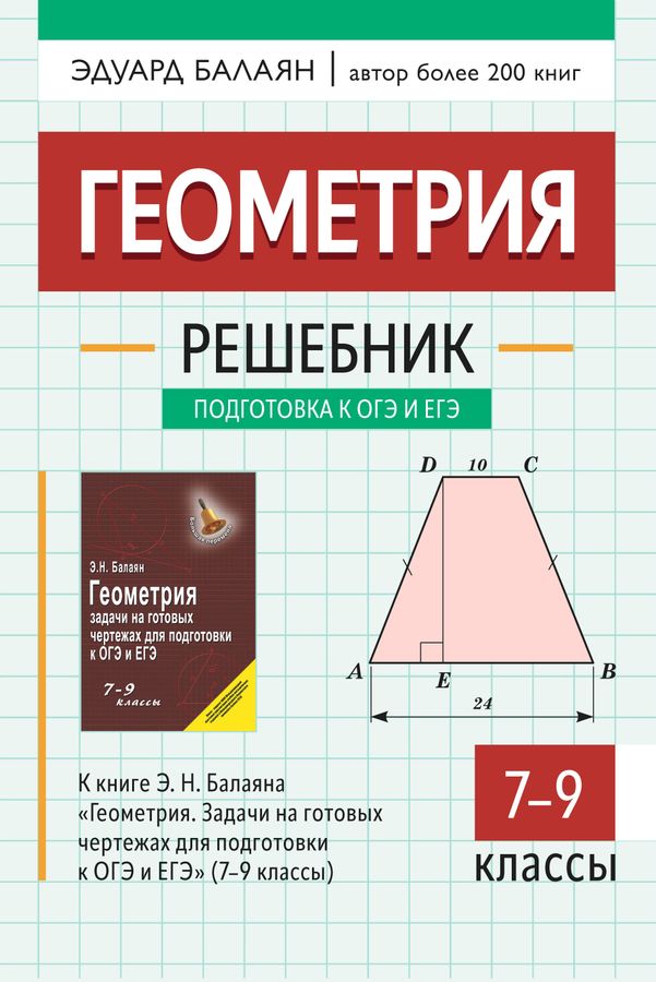 В предлагаемом пособии приводятся полные решения всех без исключения задач из книги "Геометрия: задачи на готовых чертежах для подготовки к ОГЭ и ЕГЭ: 7-9 классы", ставшей лауреатом шести международных выставок-презентаций учебно-методических изданий. Некоторые задачи решены различными способами, чтобы читатель имел возможность ознакомиться с сущностью рационального решения. Сложные задачи отмечены знаком *, а наиболее трудные - **. Ученикам будет целесообразно обращаться к решебнику после того, как они самостоятельно решат задачи, или тогда, когда они убедятся в том, что не в силах справиться с заданием. Пособие адресовано учащимся общеобразовательных школ, колледжей для подготовки к ОГЭ и ЕГЭ, а также начинающим учителям математики, студентам - будущим учителям и репетиторам.
