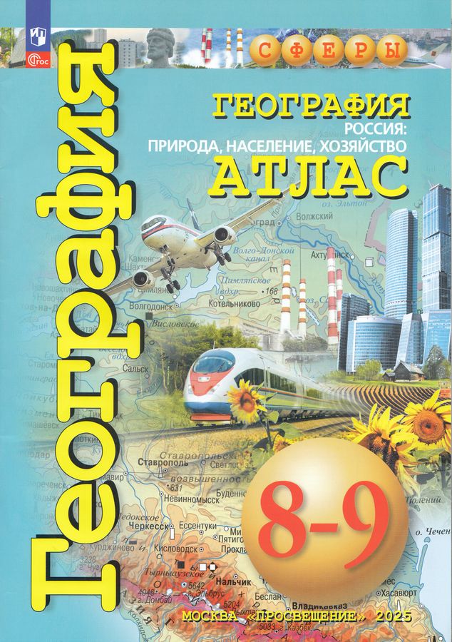 Атлас География 8-9 классы Россия: Природа, население, хозяйство Просвещение 2024 год УМК Сферы Авторы Дронов В.П., Савельева Л.Е., Котляр О.Г., Григорьева М.А. Административно-территориальное деление РФ отображено по состоянию на октябрь 2022 г.